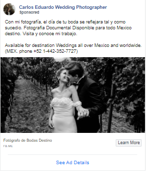 Ad creative for wedding photographer ads